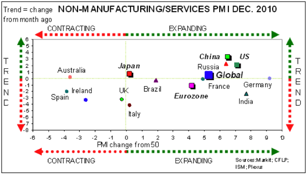 My friend Dr. Prieur du Plessis of Plexus, in South Africa, sent me the following graphs about world Purchasing Manager Indexes (the equivalent of ISM in the US), for both manufacturing and services. Source: Investment Postcards (You can sign up for free if you like.)