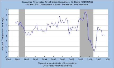 But the Fed is worried about deflation and other things, so they are going to embark on a $600-billion quantitative easing, which among other things is going to help devalue the dollar and has already caused a rise in commodity, energy, and food prices.