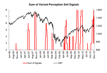 “We have continued to add new tools to our buy and sell signals. As the following chart shows, the sum of our signals is flashing a warning sign.