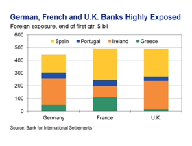And that chart is what is really going on in Europe. It is not about Germany and France wanting to help out Ireland and Greece (and eventually Portugal and Spain). They are not that benevolent. It is that they are worried about their banks going belly up.