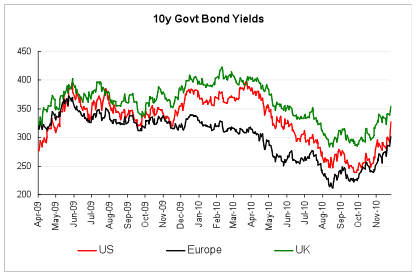 I think that is part of it. I also think that investors and non-core central banks (those in the emerging world especially) are asking themselves about the wisdom of holding sovereign debt in currencies that are either in trouble (the euro) or have central banks that are printing money (the US, UK, and Japan). Couple that with the US having just done a tax compromise that is one huge stimulus bill, on top of extending the tax cuts, and it is enough to make investors consider the wisdom of holding longer-term debt at low rates.